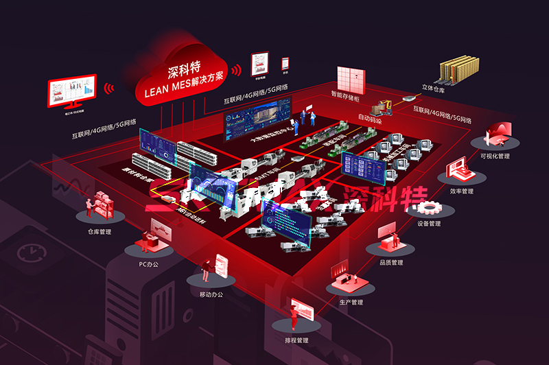 深科特LEAN MES智能工廠解決方案通過MES與SMT車間設備,注塑成型車間設備,沖壓模具制造設備,機械加工生產設備,半導體生產設備,智能倉儲和物流設備,標準和非標自動化設備,機器人等人工智能設備實現深度集成,構建全球化工業4.0布局。