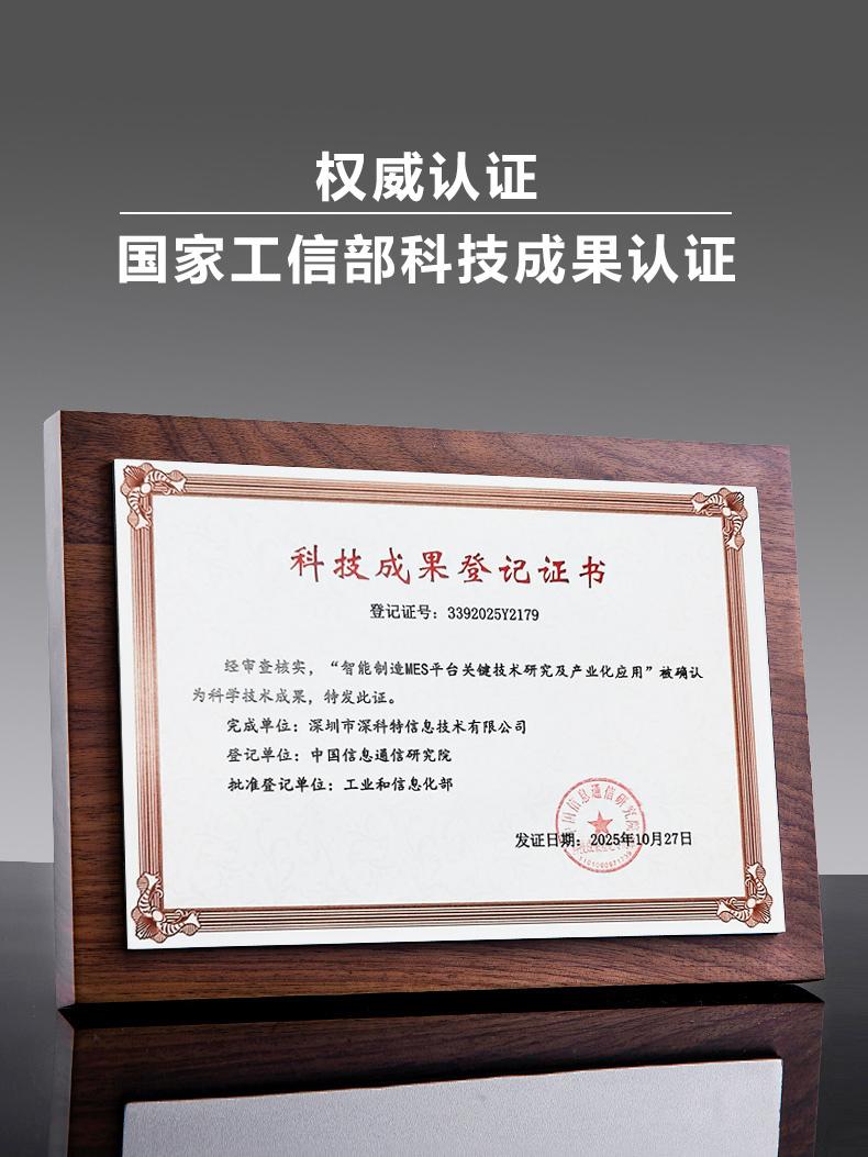 深科特依托深厚的技術(shù)沉淀,"智能制造MES平臺(tái)關(guān)鍵技術(shù)研究及產(chǎn)業(yè)化應(yīng)用"被國(guó)家工信部認(rèn)定為科技成果。榮獲該項(xiàng)重磅認(rèn)證,標(biāo)志著我司自主研發(fā)能力和成果轉(zhuǎn)化實(shí)力獲得了國(guó)家層面的高度認(rèn)可,體現(xiàn)出了深科特技術(shù)的先進(jìn)性,項(xiàng)目交付的落地質(zhì)量、服務(wù)口碑的持續(xù)突破與領(lǐng)先實(shí)力。